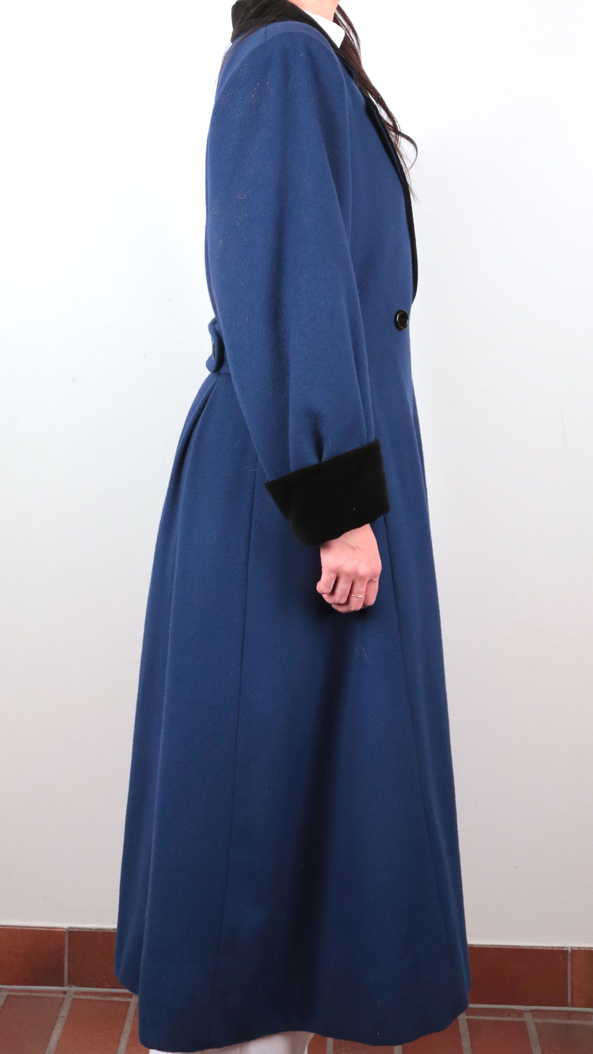 Manteau long bleu T.38 années 80 Variation Yves Saint Laurent – seconde main