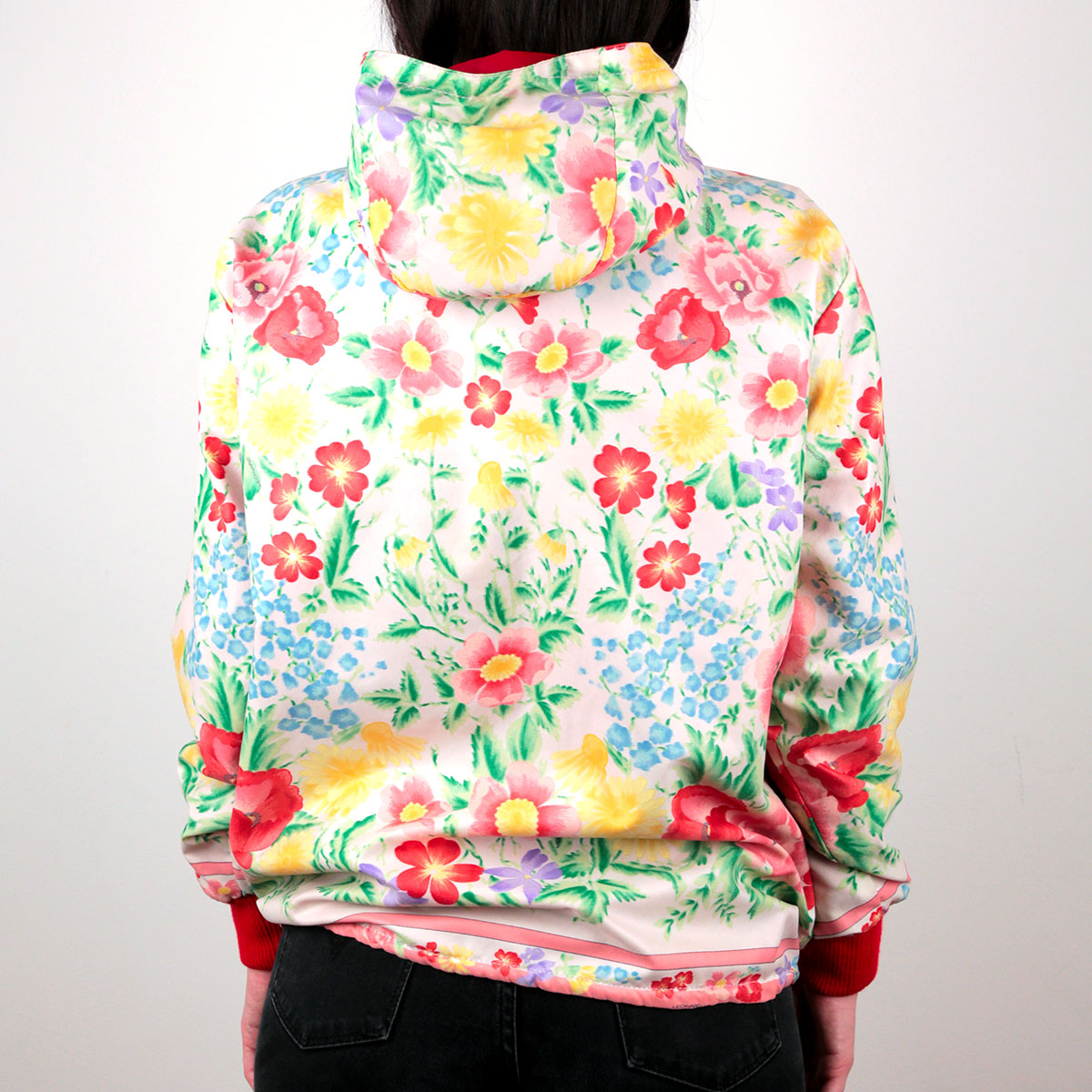 Veste de pluie vintage Léonard Paris années 80, imprimé floral emblématique et coupe sportswear chic.