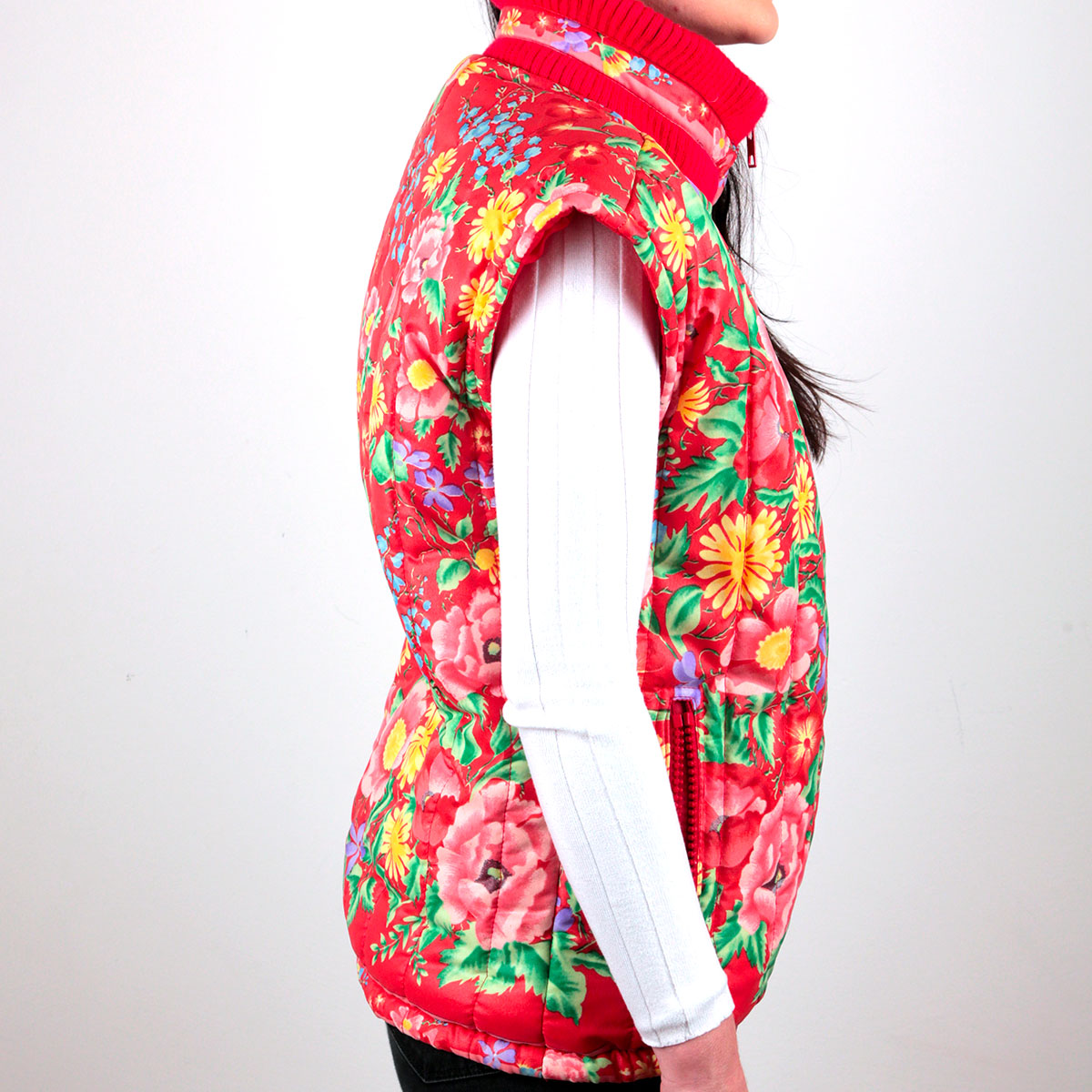 Veste sans manches vintage Léonard Paris années 80, pièce imprimé floral d’inspiration japonaise et col montant sportswear.